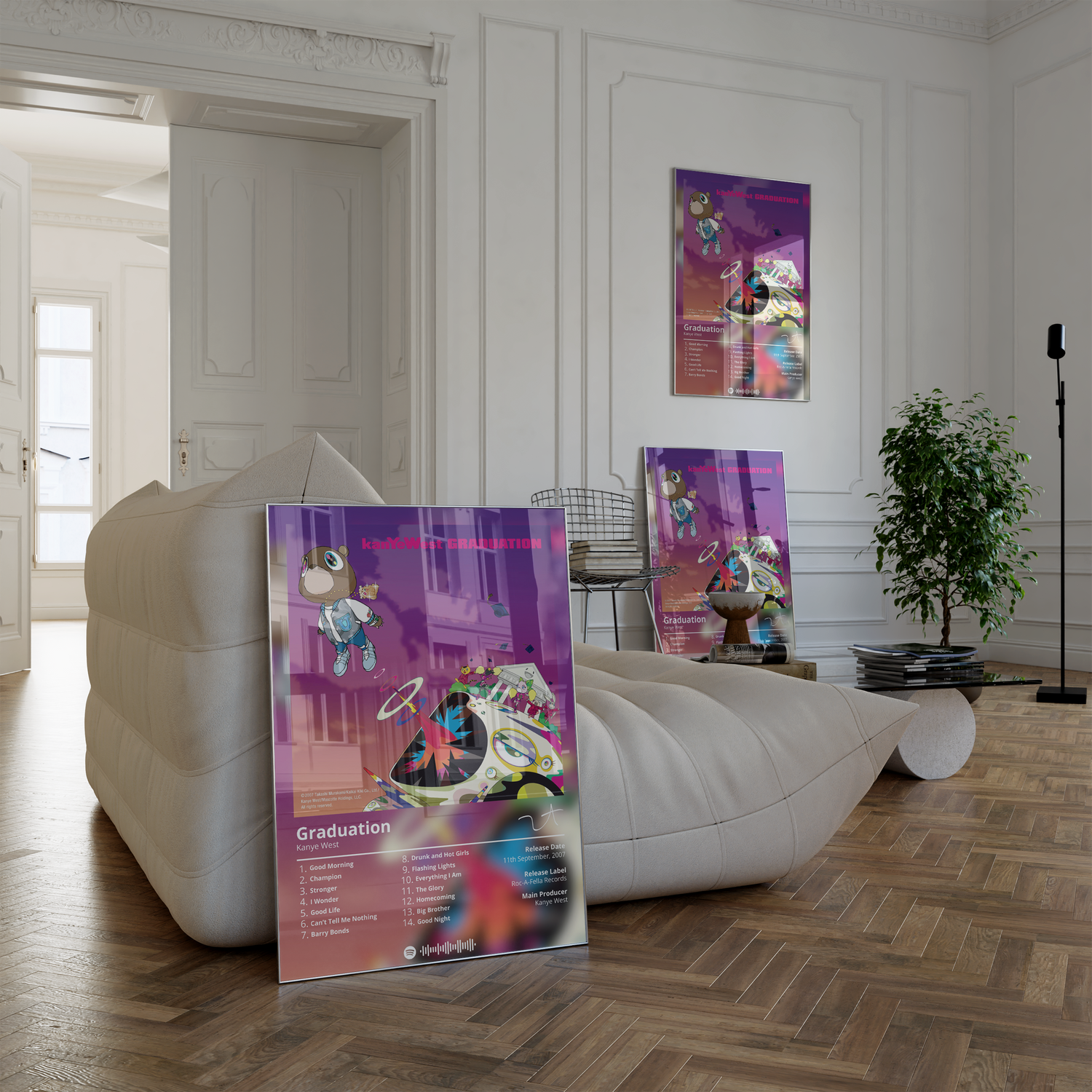 Celebrate the boundary-pushing creativity of Kanye West with our selection of poster prints featuring his groundbreaking album covers. From the raw honesty of "The College Dropout" to the avant-garde artistry of "Yeezus," each poster reflects Kanye's fearless exploration of music, fashion, and culture, making a bold statement in any room.