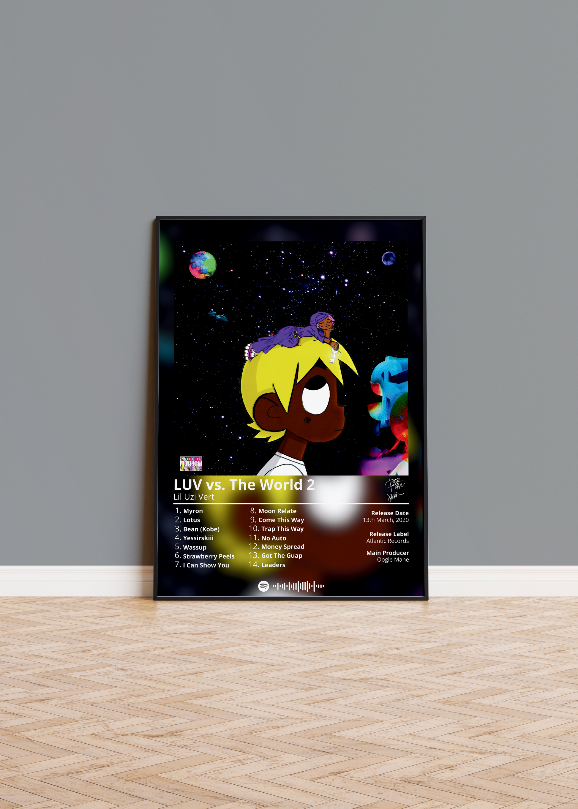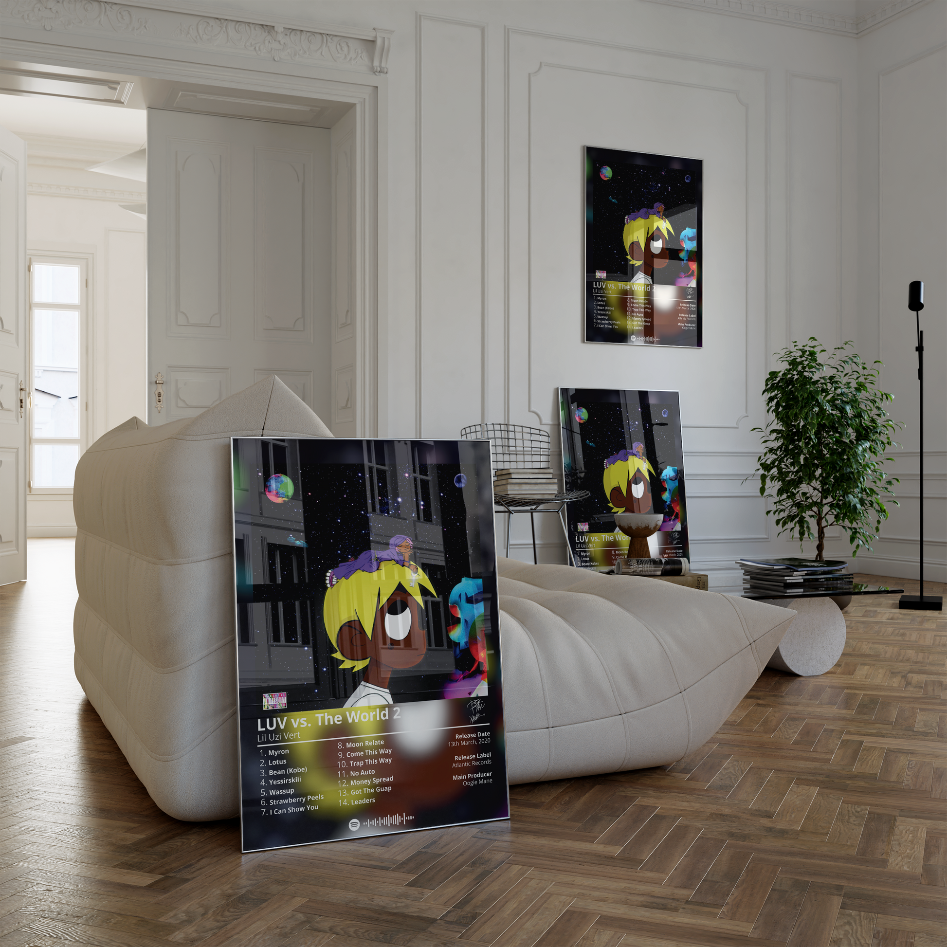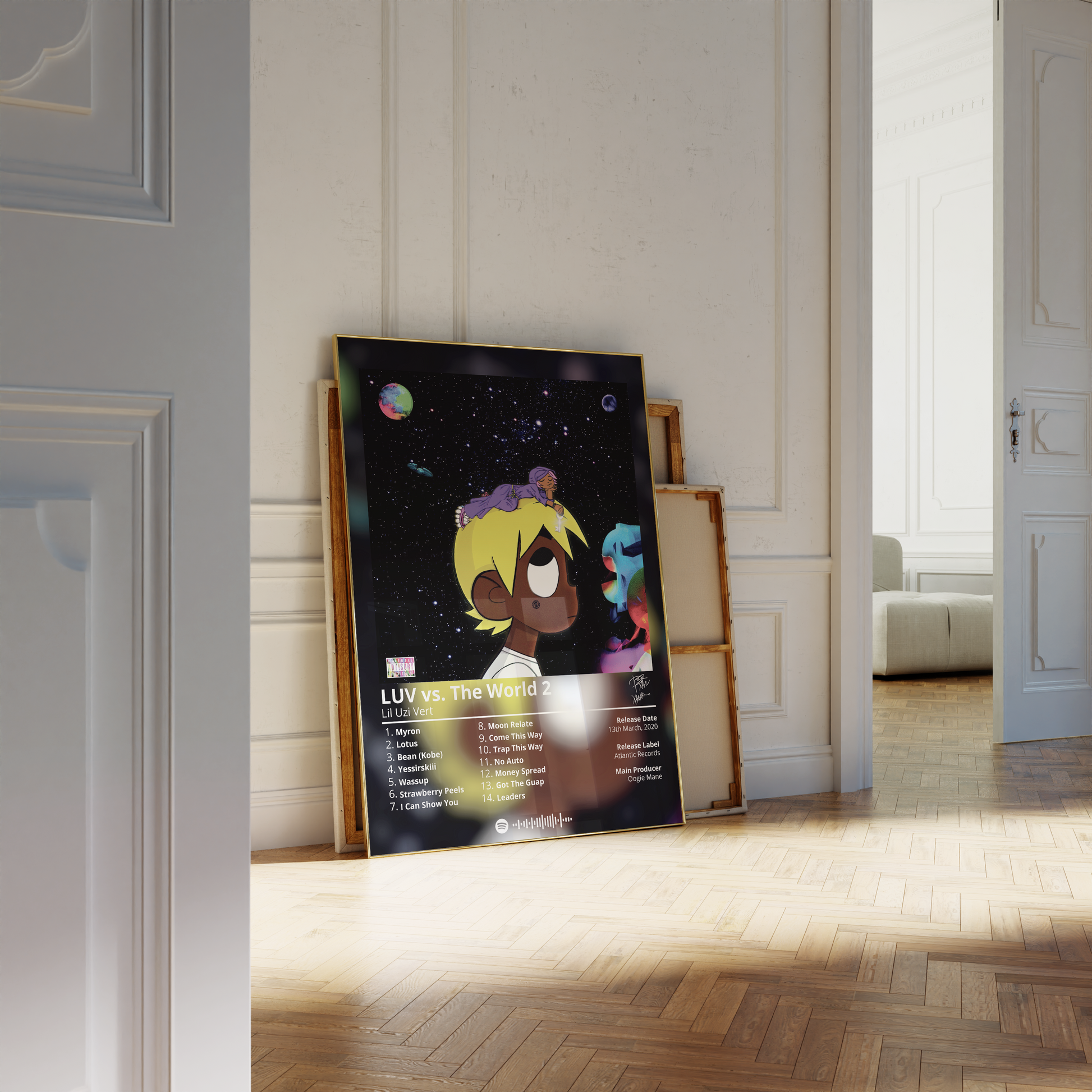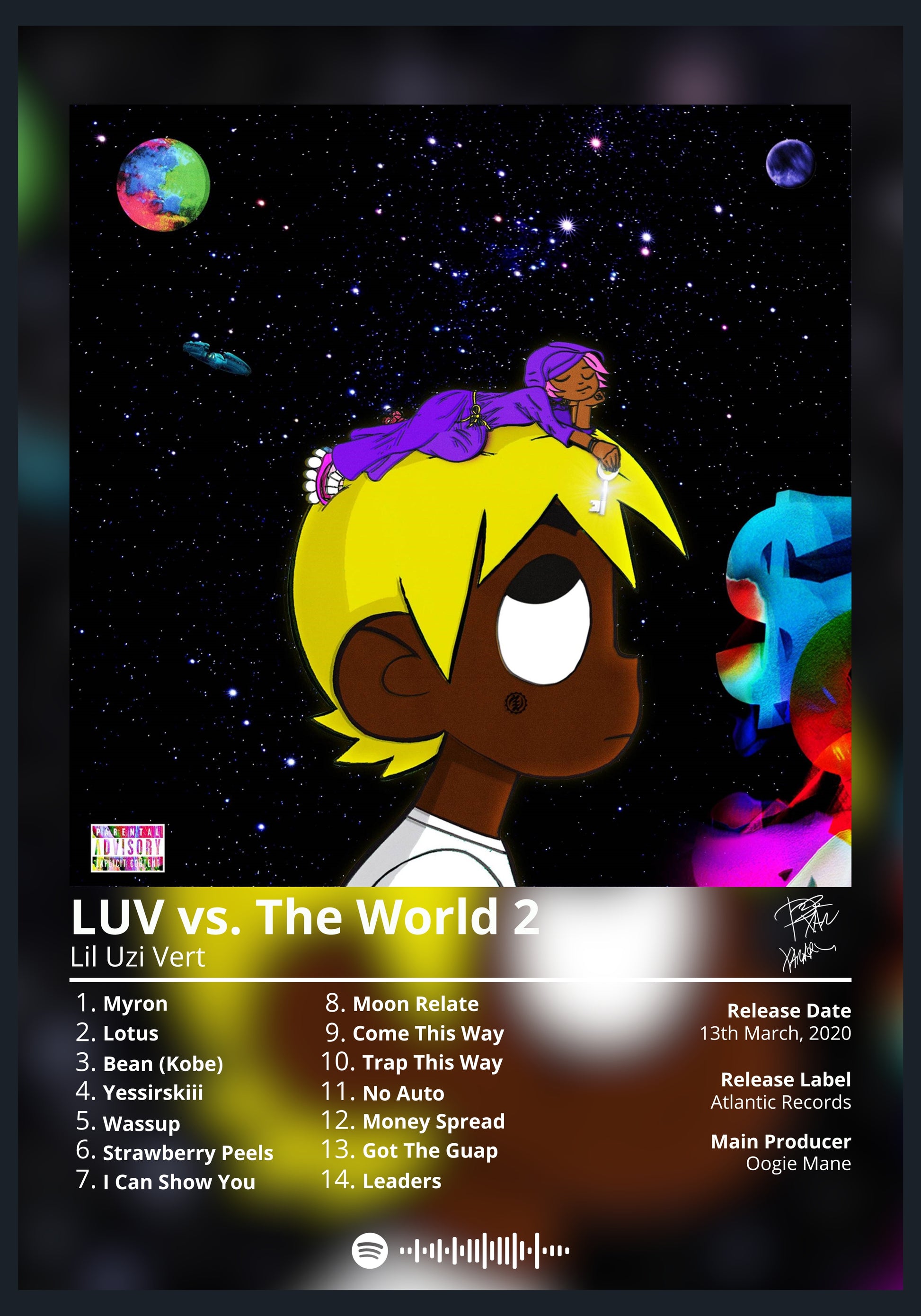 Lil Uzi Vert's "LUV vs. The World 2" is a must-have for any fan of the rapper's music. This poster features the album's cover art in a minimalist design that is perfect for any room.