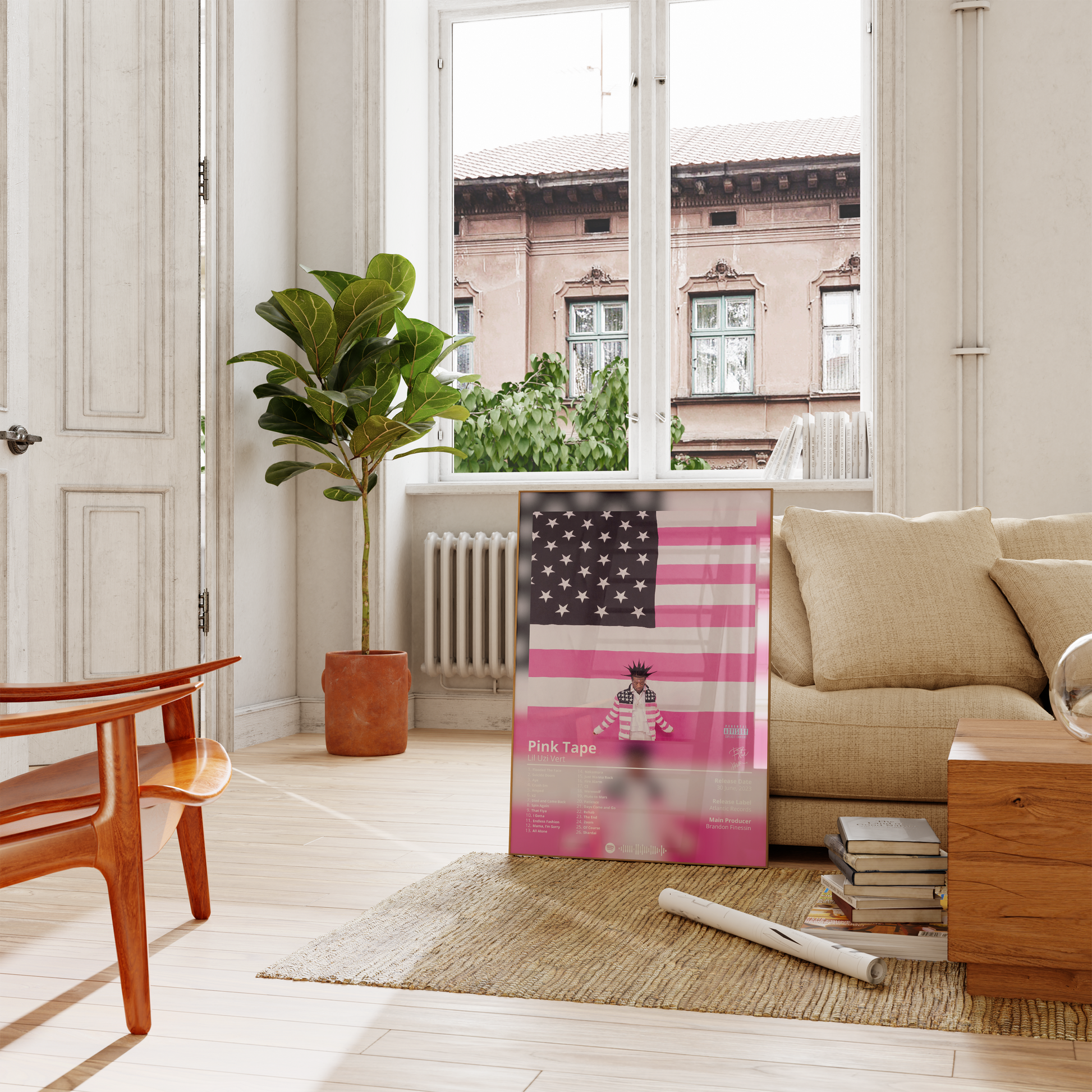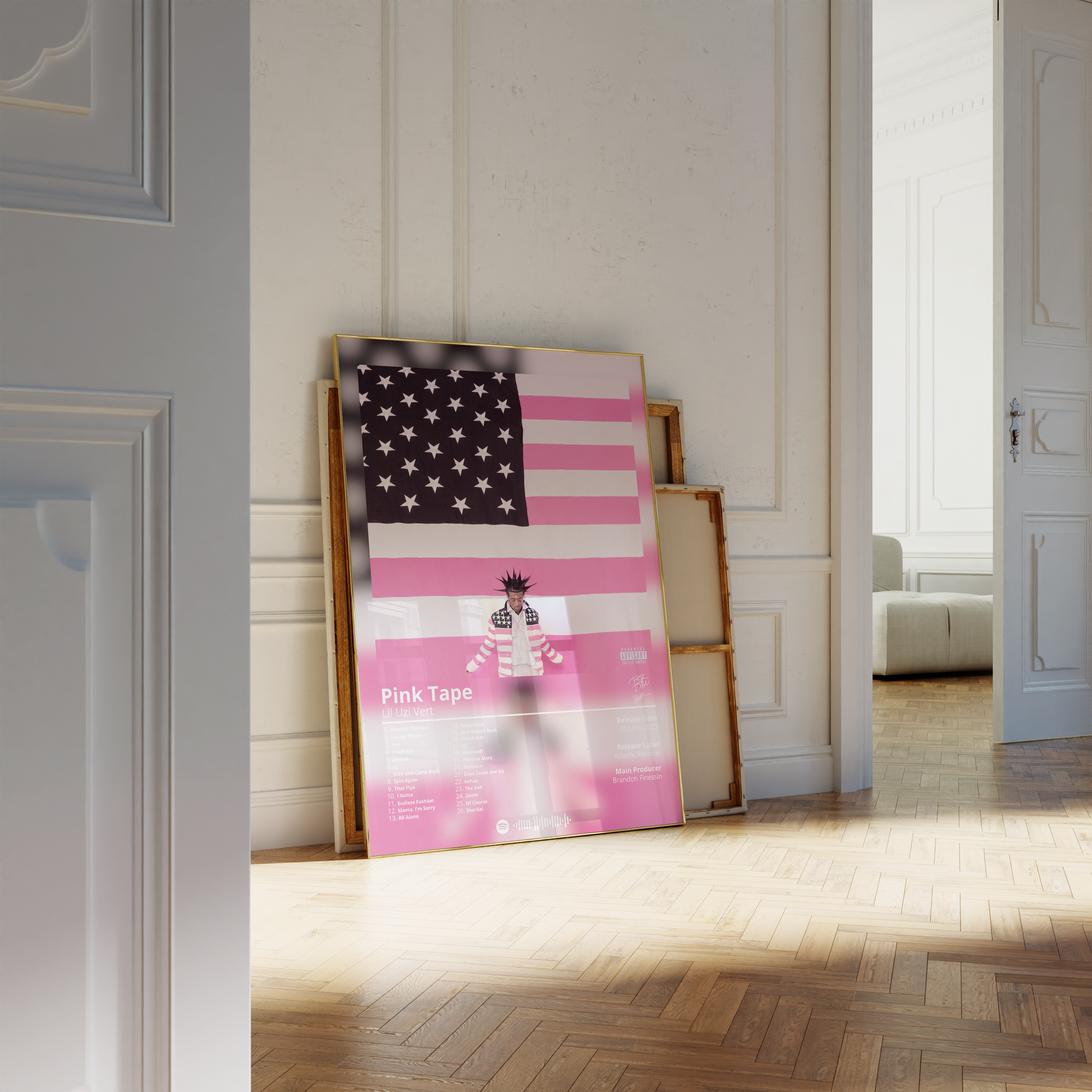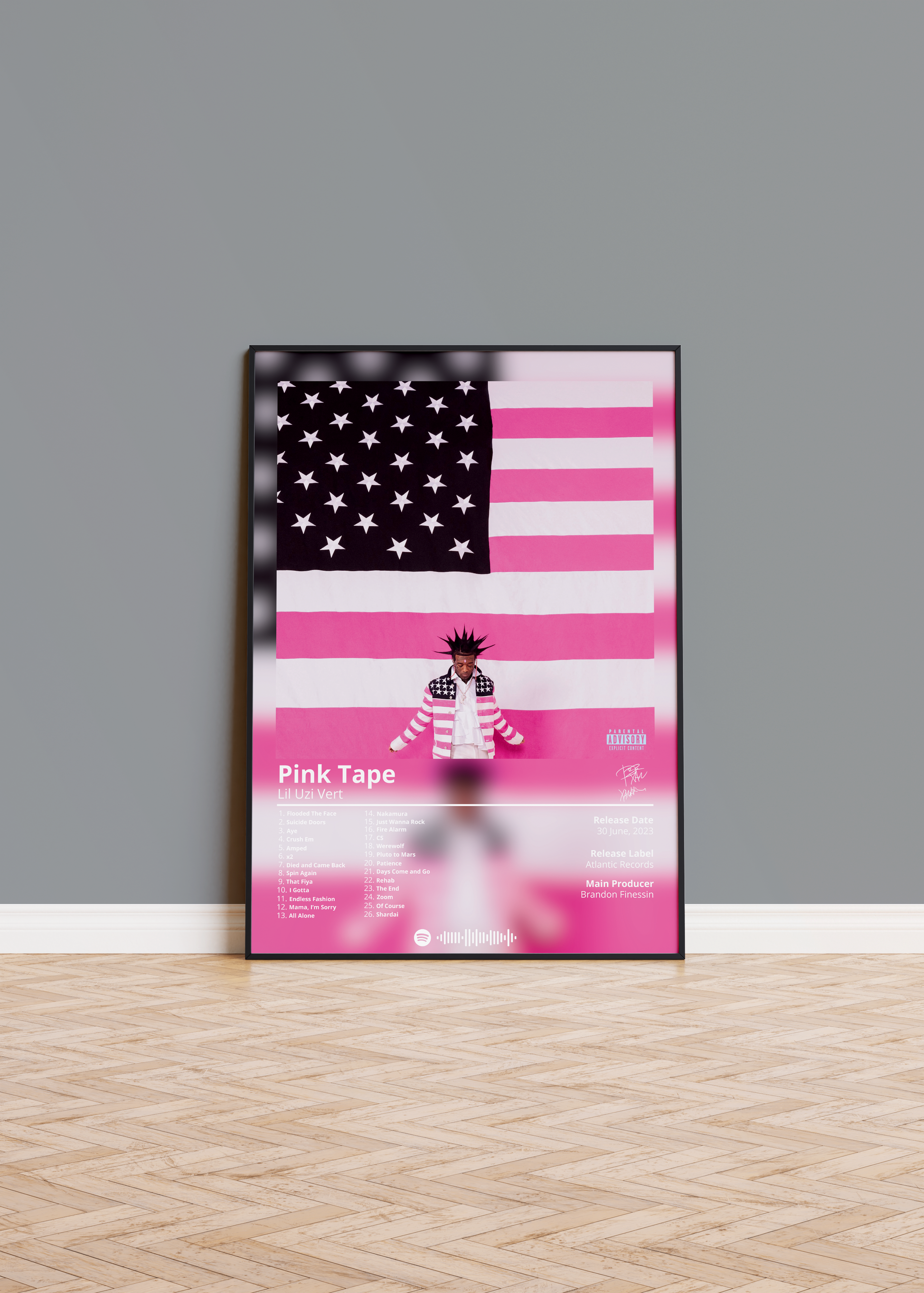 Lil Uzi Vert's "Pink Tape" is a must-have for any fan of the rapper's music. This poster features the album's cover art in a minimalist design that is perfect for any room.