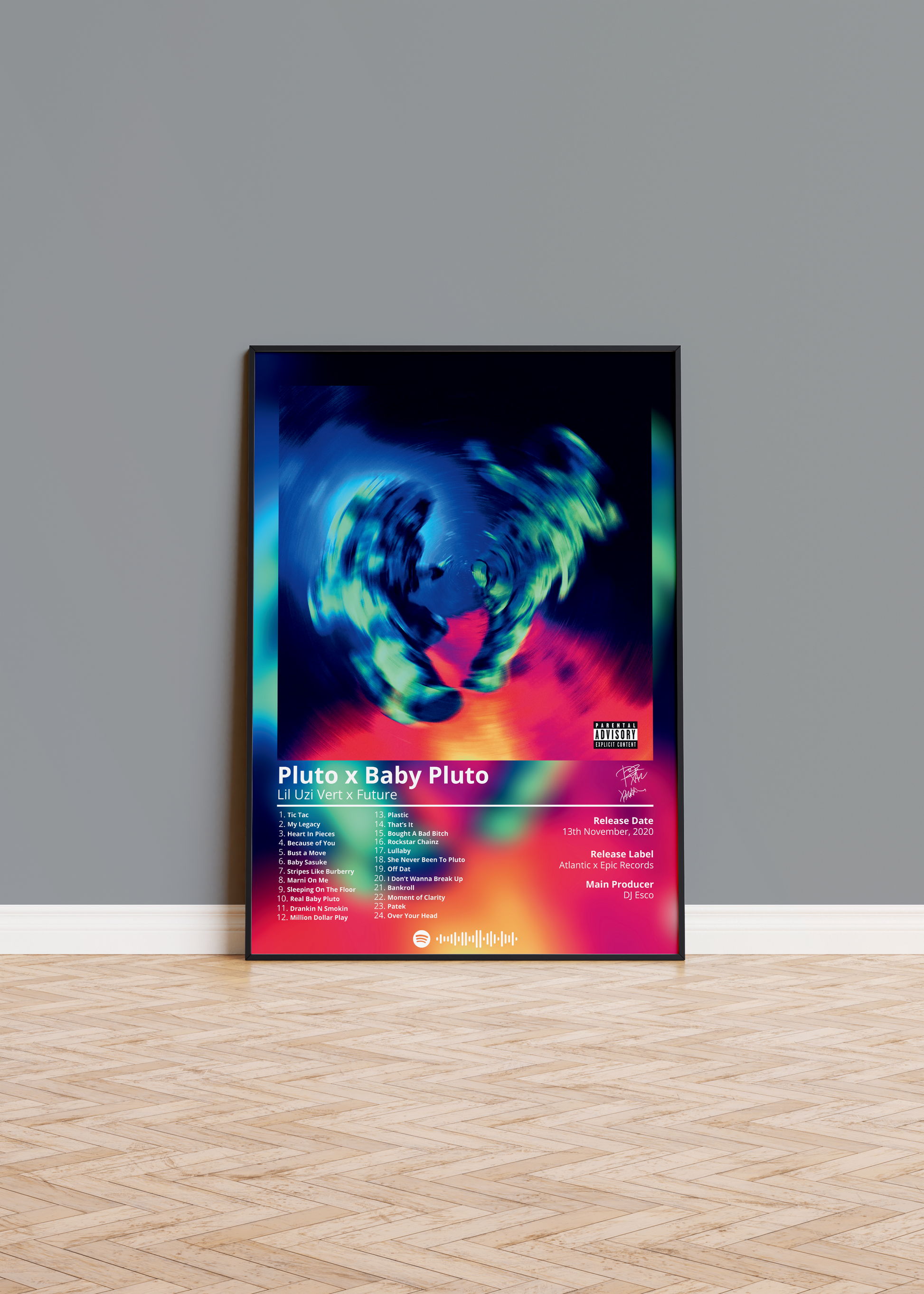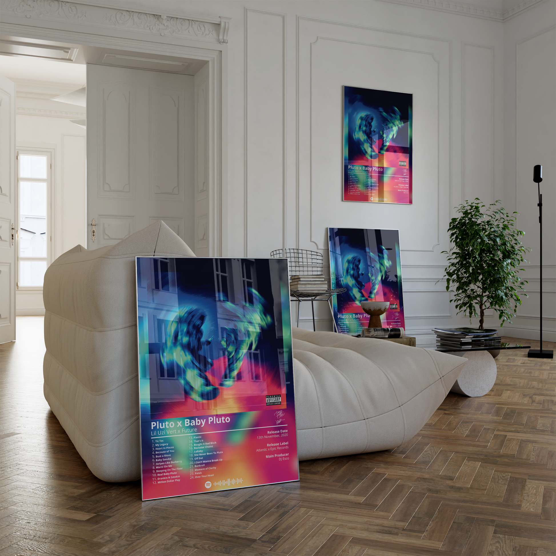 Lil Uzi Vert's "Pluto x Baby Pluto" is a must-have for any fan of the rapper's music. This poster features the album's cover art in a minimalist design that is perfect for any room.